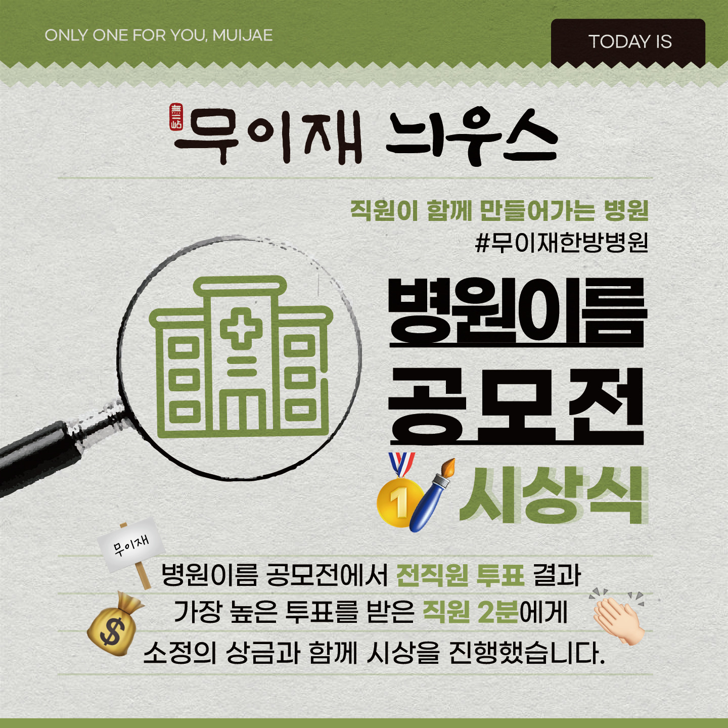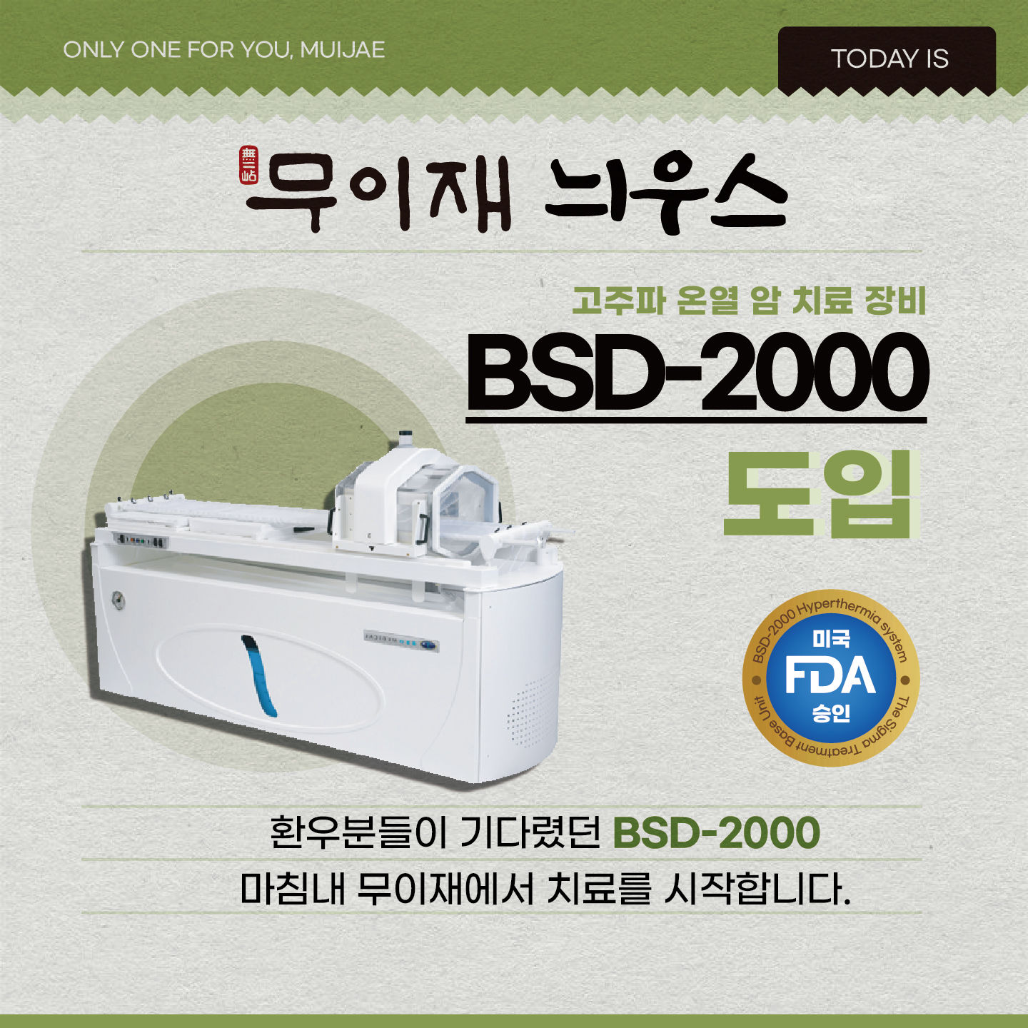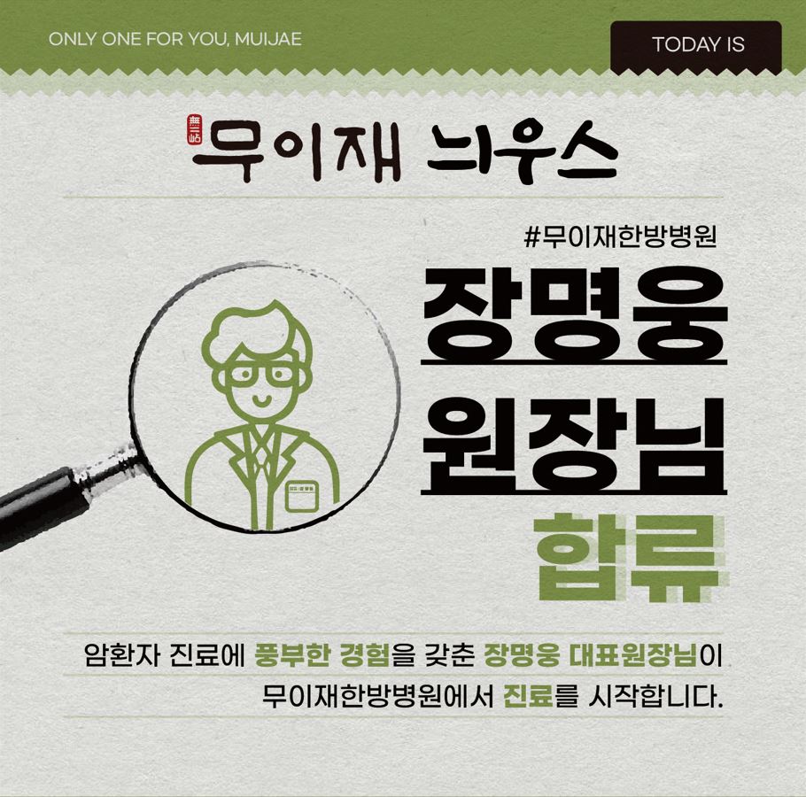 무이재 News 공지사항 미디어보도 5월 <무이재한방병원> 오픈 2023.04.28 봄맞이 프로젝트 1 - 무이재 정원 조경공사 2023.05.01 봄맞이 프로젝트 2 - 아쿠아리움 설치 2023.05.01 5월 어버이날 이벤트 2023.05.11 무이재한방병원 참여 ! <서울시 병원행정관리자 체육대회 및 가족축제> 2023.05.25 무이재한방병원 병원 이름 공모전 시상식 2023.07.04 무이재한방병원 장명웅 원장님 합류 소식 2023.07.07 무이재한방병원 BSD-2000 장비 도입 및 진료 시작 안내 2023.07.21 위클리피플 무이재한방병원 권태욱 병원장님 커버 장식 및 인터뷰 소식 2023.08.04 무이재한방병원 BSD-2000 도입 및 설치과정 2023.08.14 무이재한방병원, 환우와 보호자를 위한 ‘봄날의 딸기축제’ 성료 2026.03.12 무이재한방병원, 암 환자 대상 '암 부작용·면역 관리' 건강강좌 성료 2026.02.20 무이재한방병원, 심장을 울리는 하모니 '카르디오'의 '치유와 감동의 3악장' 성료 2025.12.11 무이재한방병원-무이재의원 강동, 소외계층 아동 가정에 공기청정기 기부 2025.11.28 세계적 거장 '빈센트 맥킨도' 초대전 : 무이재한방병원에서 만나는 치유의 미학 2025.11.17 무이재한방병원, 야외정원에서 펼쳐진 ‘가을식탁 건강을 담다’ 행사 성료 2025.10.21 무이재의원 강동점, 암 환자 맞춤형 ‘식단·영양 관리’ 시스템 도입 (리엔에이치 MOU) 2025.08.21 무이재의원 강동점 개원, 무이재한방병원 노하우를 담은 올림픽공원 옆 암 면역 관리의 새로운 거점 2025.08.06 "어머니를 위한 음악 편지" 무이재한방병원 '사랑의 연주회' 감동 현장 2025.07.10 무이재한방병원, 대한온열의학회와 ‘고주파온열암치료’ 공동 연구 업무 협약 체결 2025.07.03